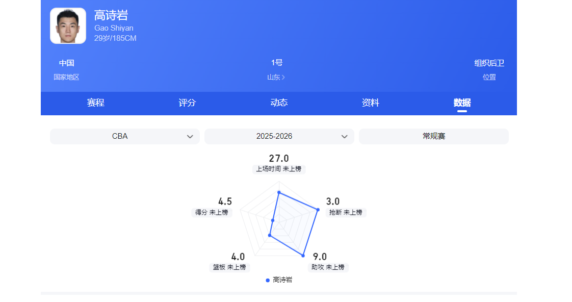 助攻这项数据参考意旨不大,因为山东队都是外助在跑计策,他们得分才智强,跑出位置基本能得分,高诗岩第一时刻传昔时便是助攻。但中国男篮莫得外助水平球员,每一趟合要紧需要团队合营,这就条目后卫有饱胀要紧牵连力,显然高诗岩不具备。